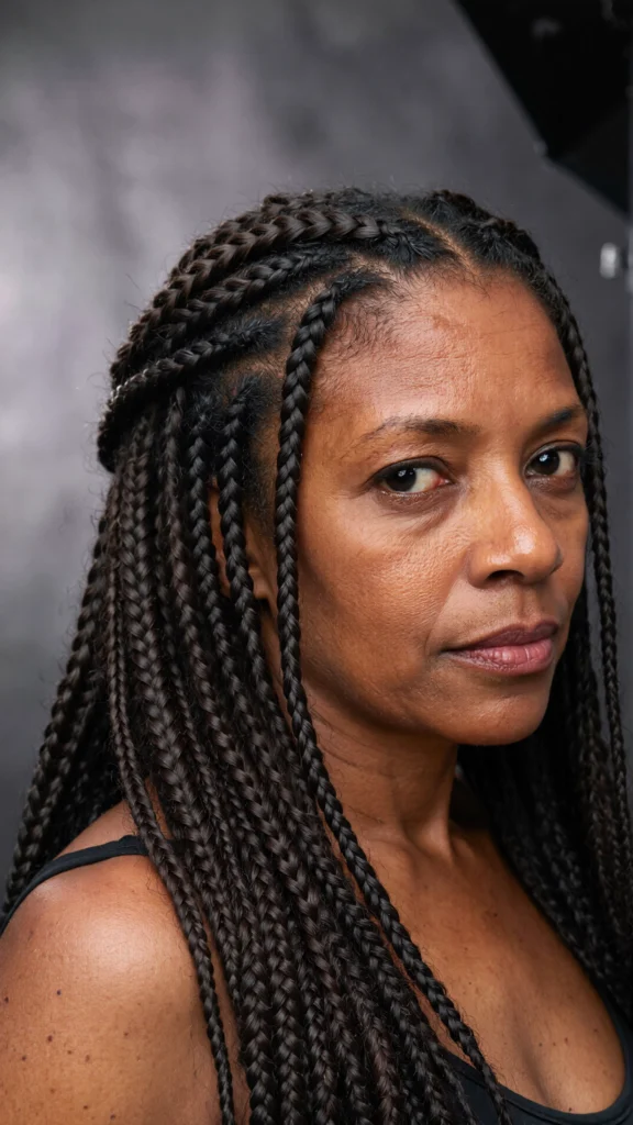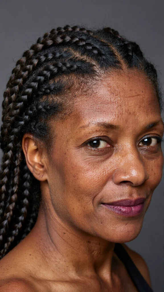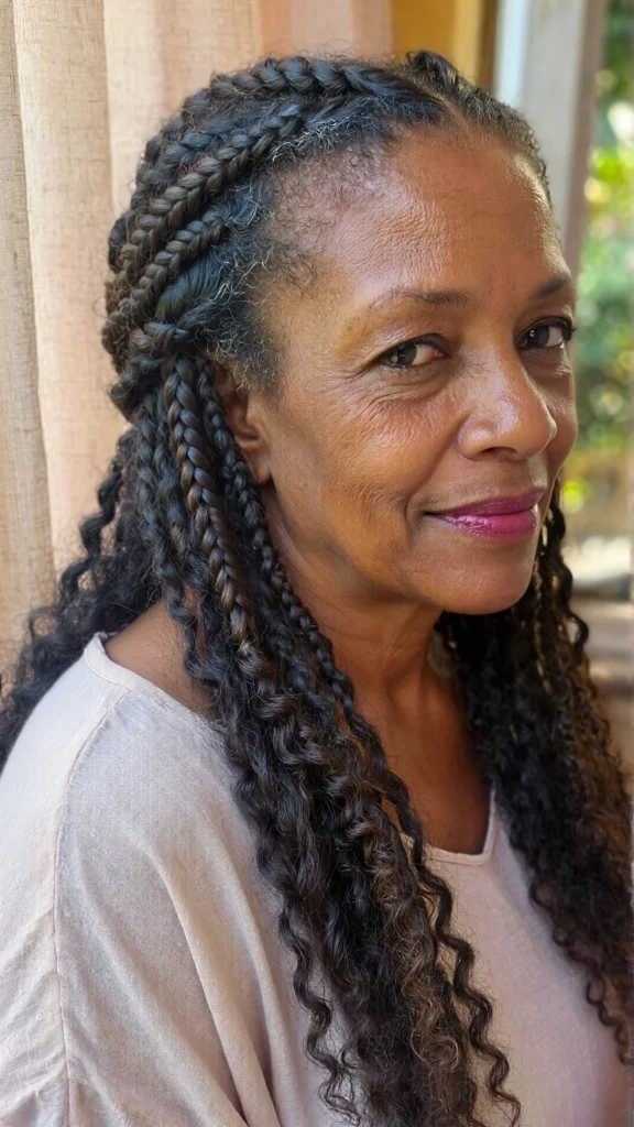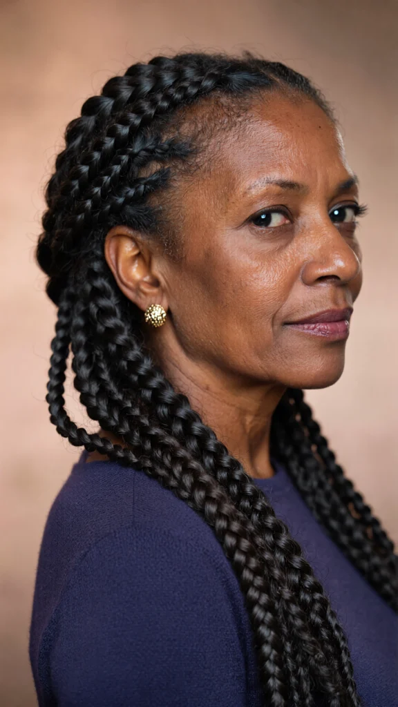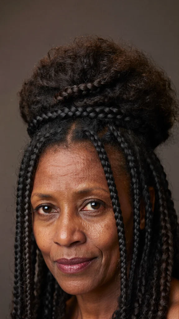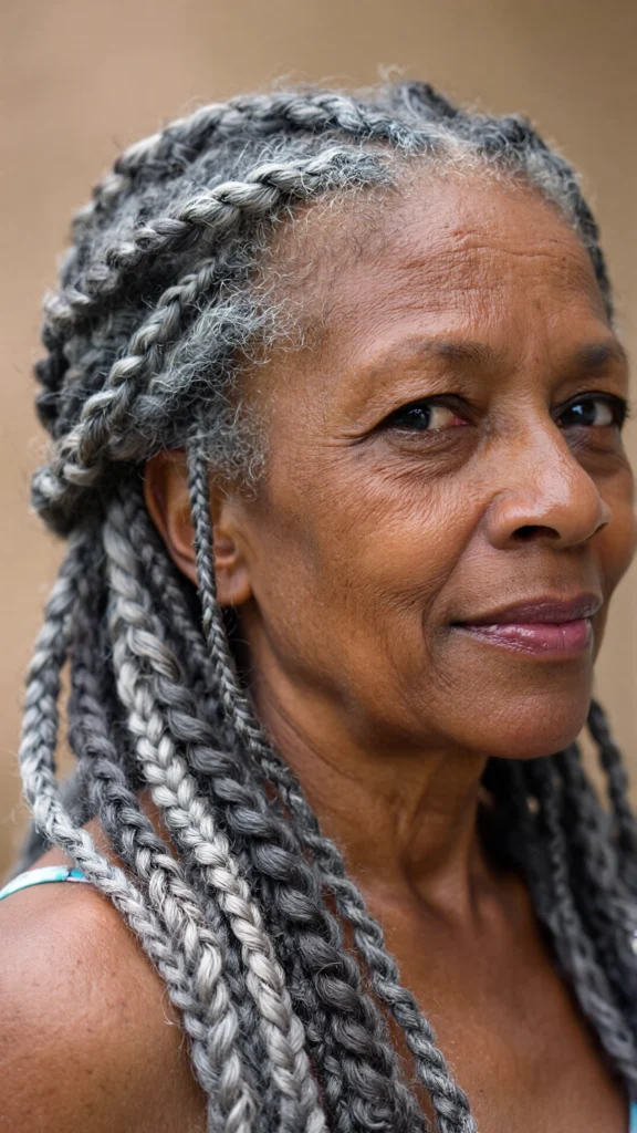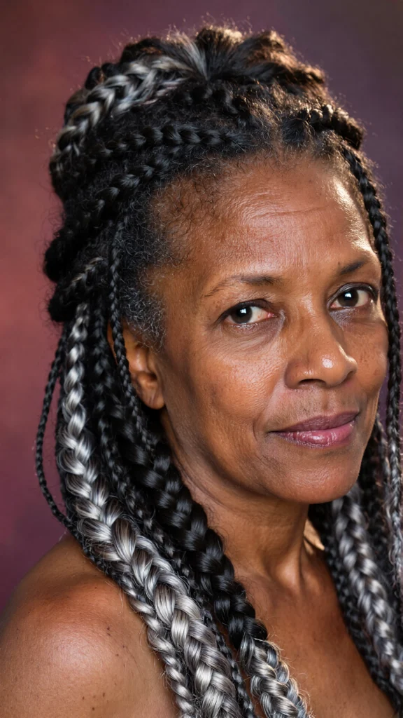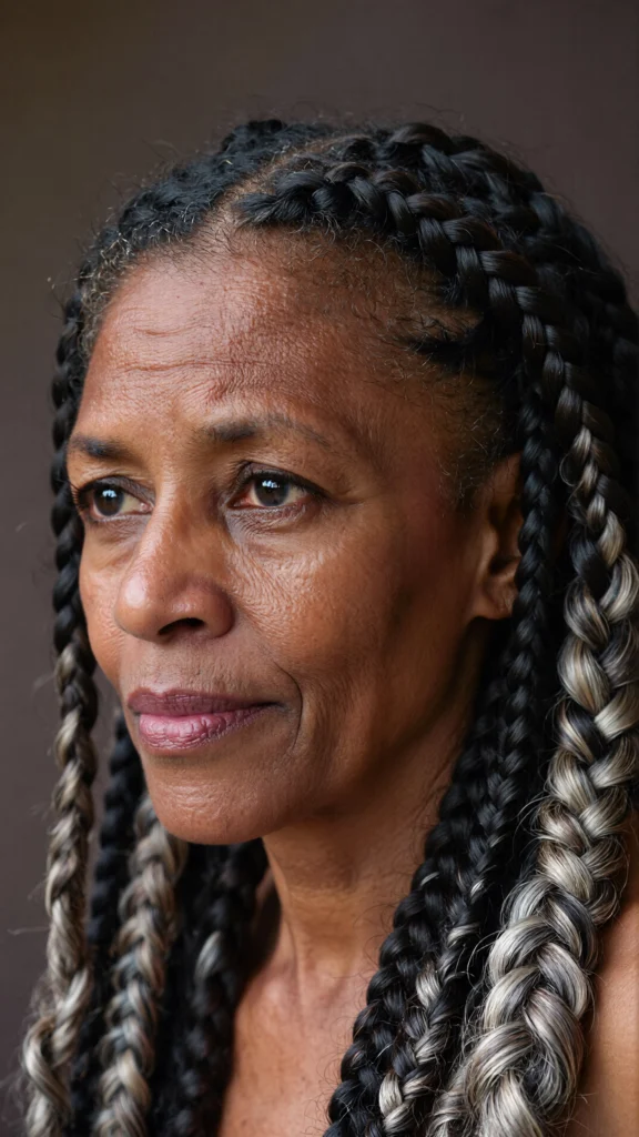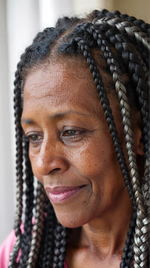From classic box braids to soft crown braids, silver-blended looks, and low-maintenance protective styles, these braid ideas celebrate maturity, confidence, and individuality.