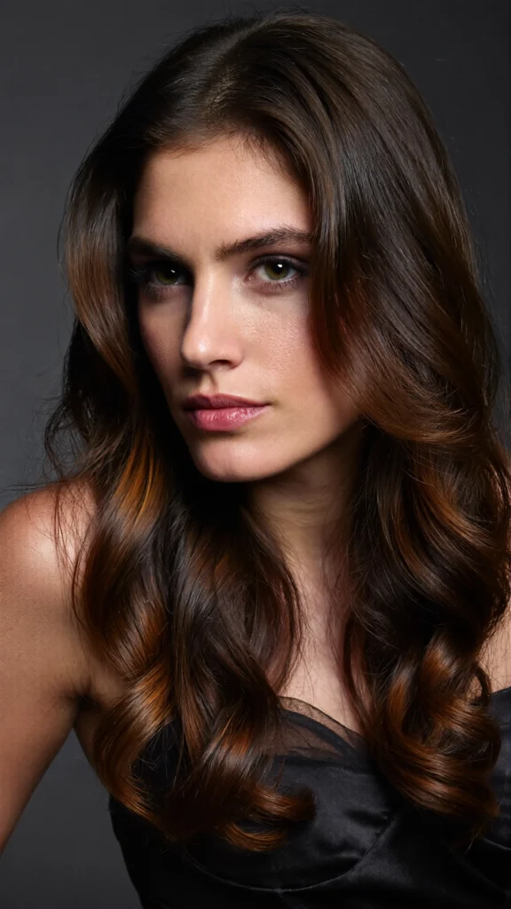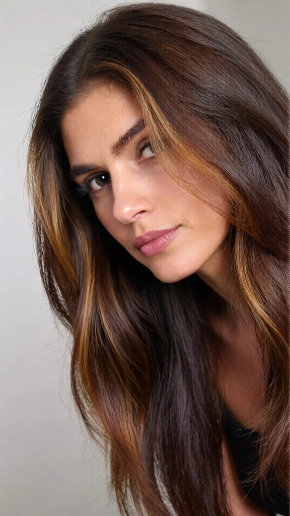 For those who prefer a deeper contrast, try espresso brown hair with rich, deep caramel accents. The darker base combined with subtle warmth gives a sophisticated, luxe feel.