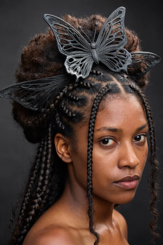 25. Cornrows with Butterfly Design