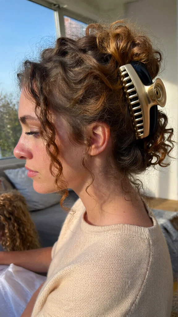 34. Curly Updo with Claw Clip