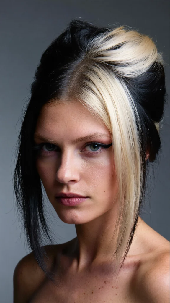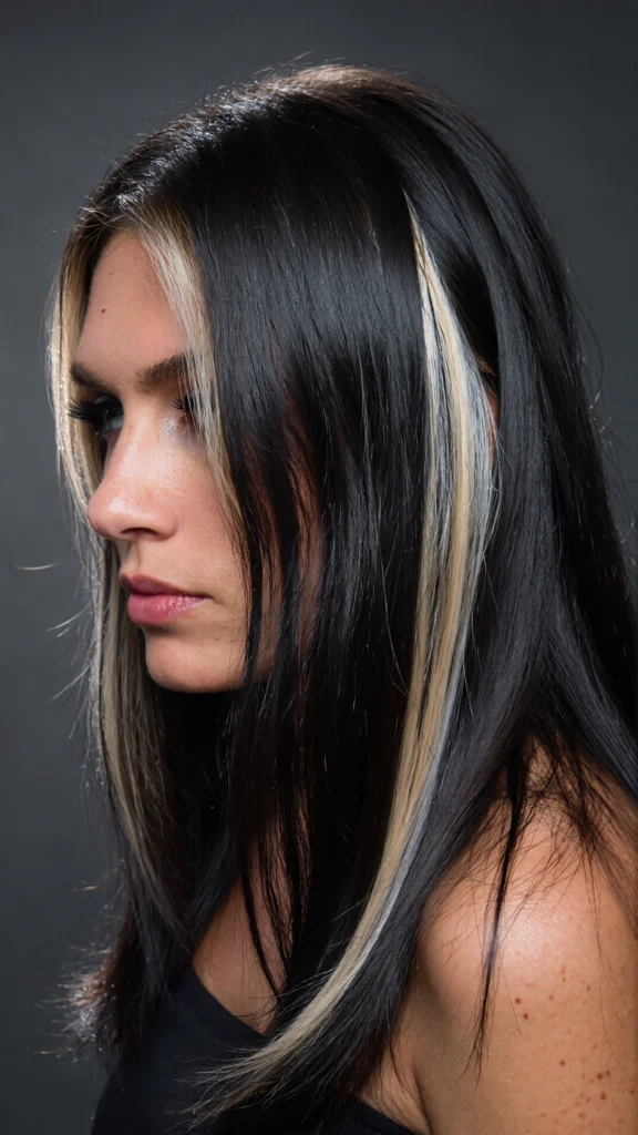 Cool blonde highlights give black hair an edgy, fashion-forward vibe.