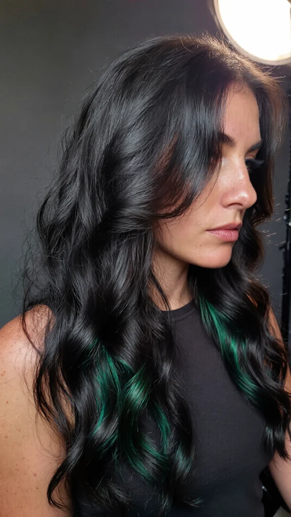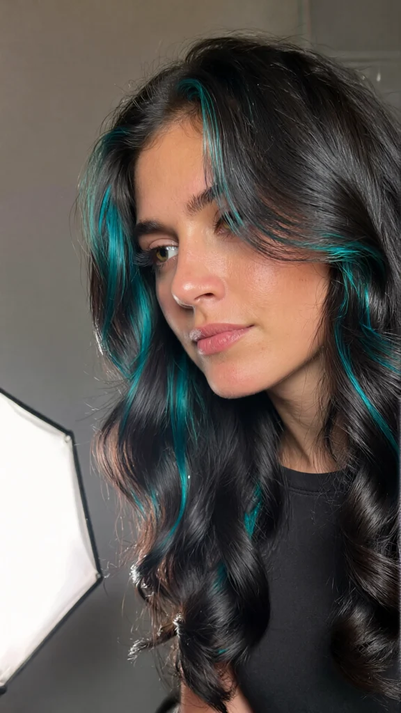 Perfect for creative personalities, teal pops beautifully against black hair.