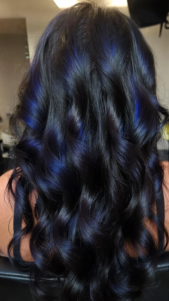 A subtle blue undertone adds shine and mystery to natural black hair.