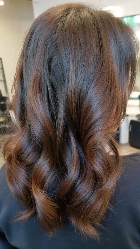 Adding subtle auburn tones to dark brown hair creates warmth and depth without overpowering the base color.
