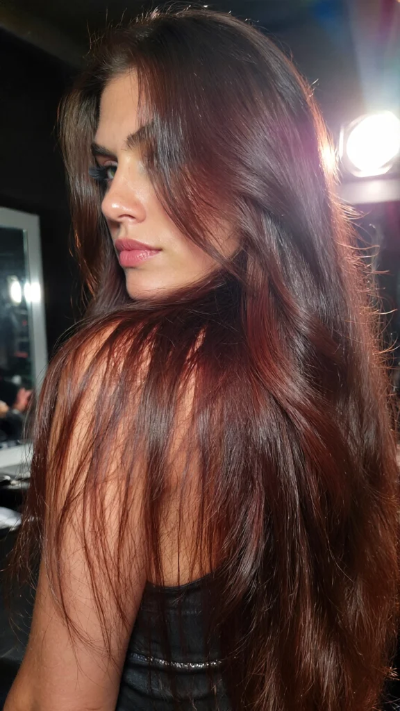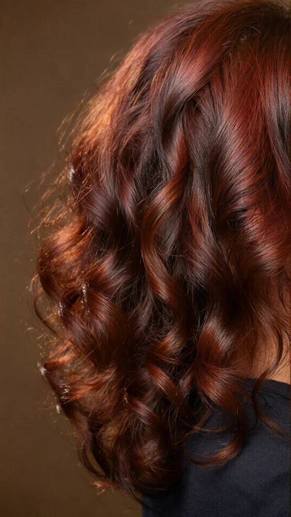 The red undertones appear differently in various lighting, giving hair a dynamic look.