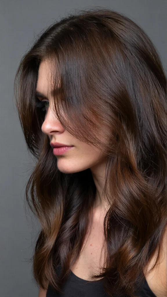 Cool chocolate brown removes warm undertones for a sleek, polished look. It’s a refined option for brunettes who prefer cooler shades.
