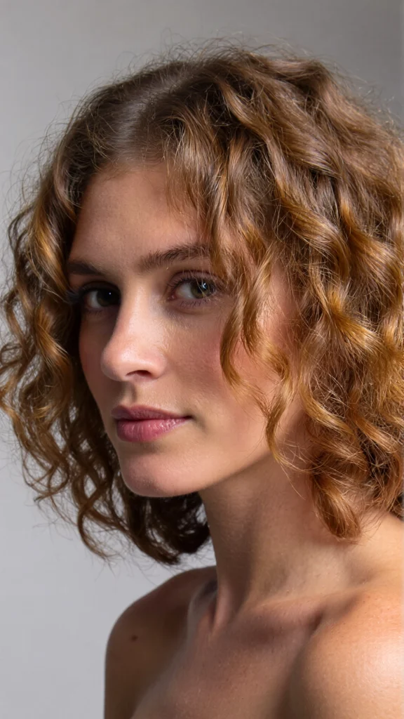 A short curly bob becomes even more playful with honey blonde tones. This look is chic, easy to maintain, and full of personality.