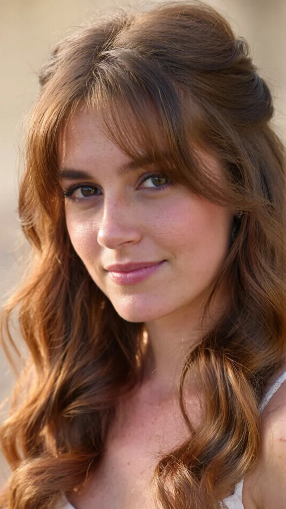 For a softer look, pair long layers with wispy, light bangs. This gives a romantic, feminine feel without commitment to heavy fringe.