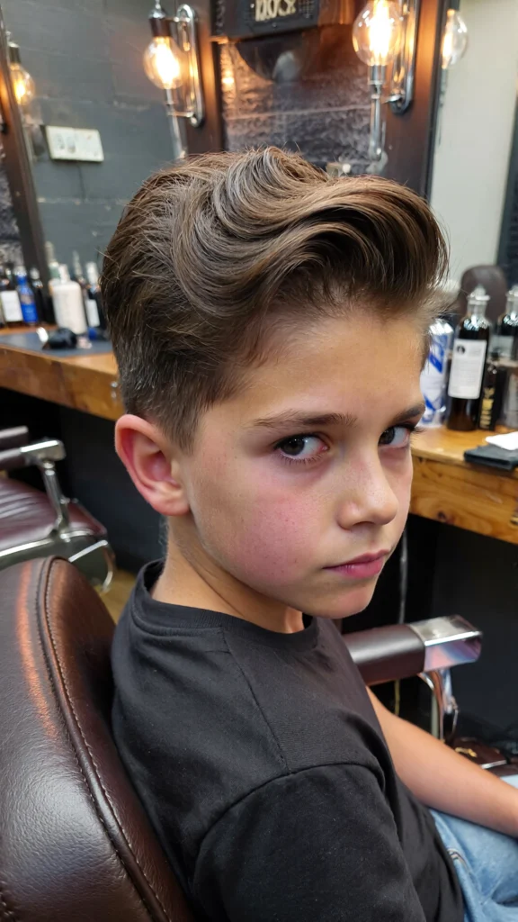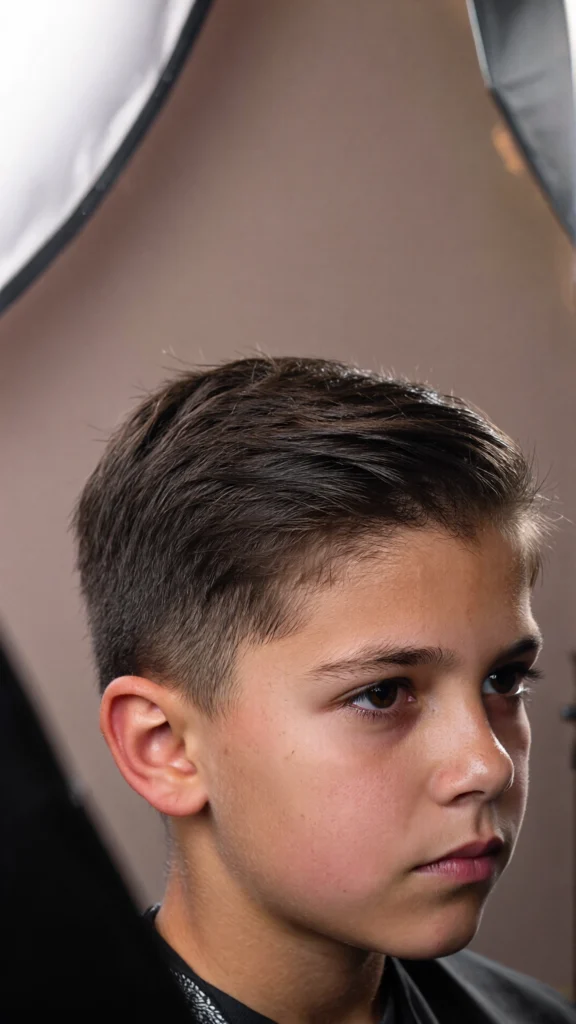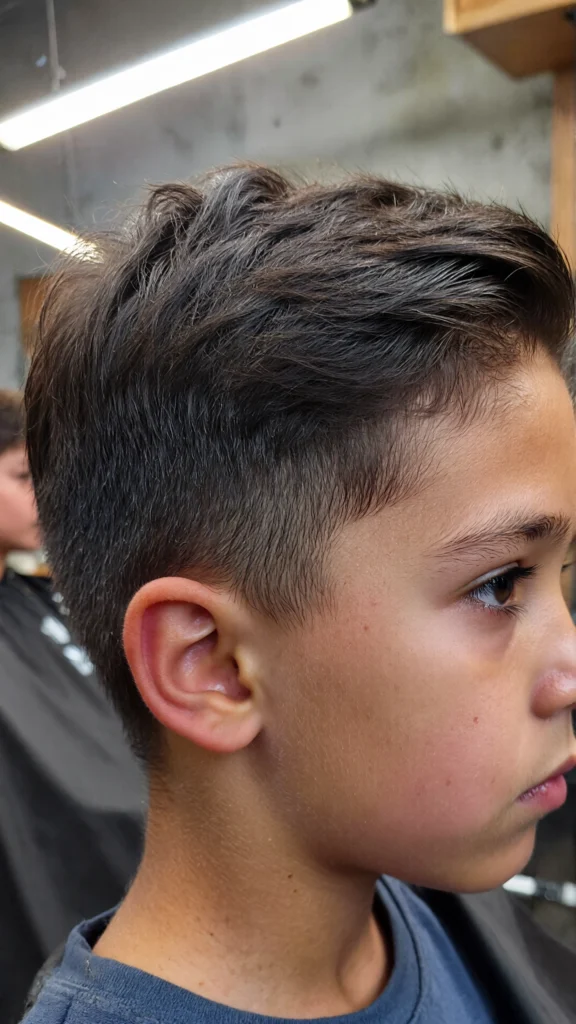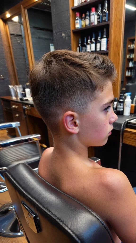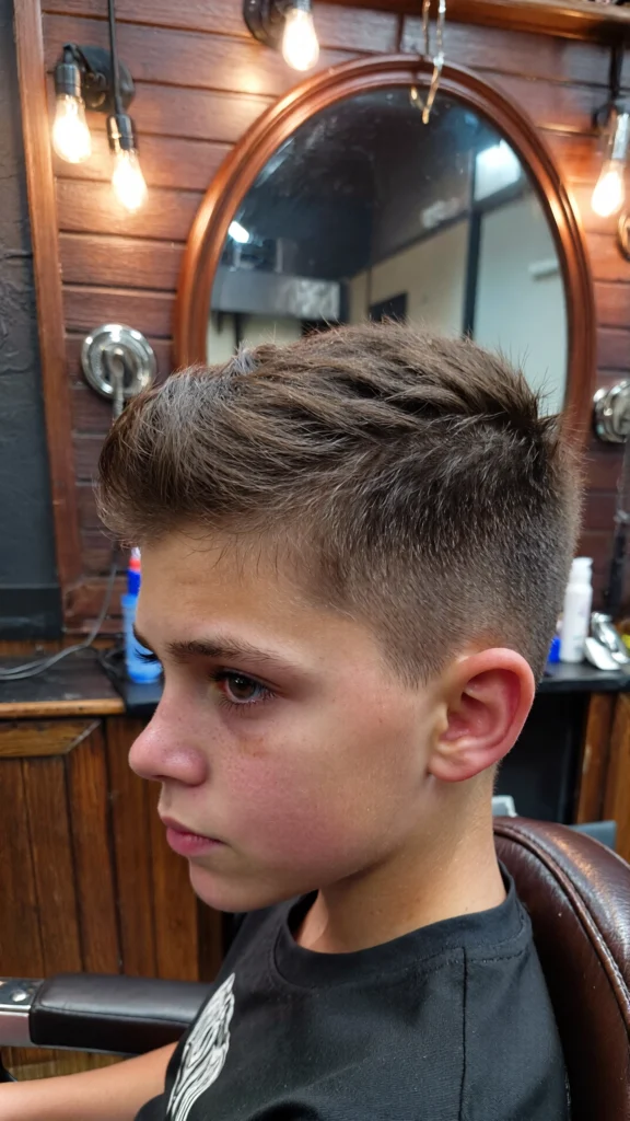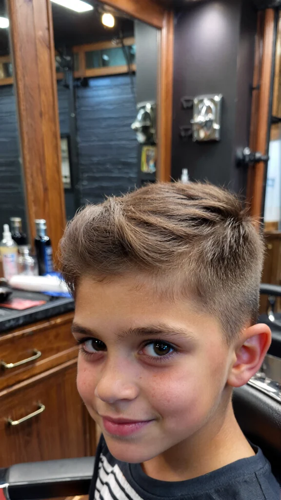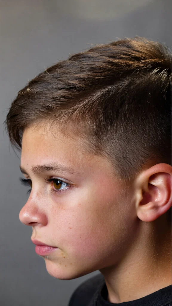 This timeless haircut features a clean side part paired with a low taper fade. It’s ideal for boys who prefer a neat and traditional look that never goes out of style.