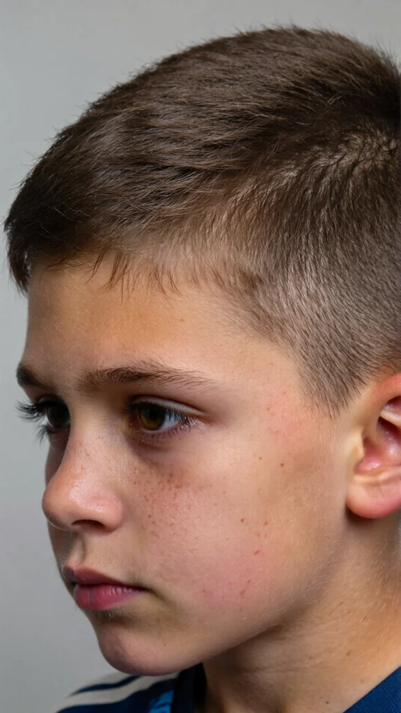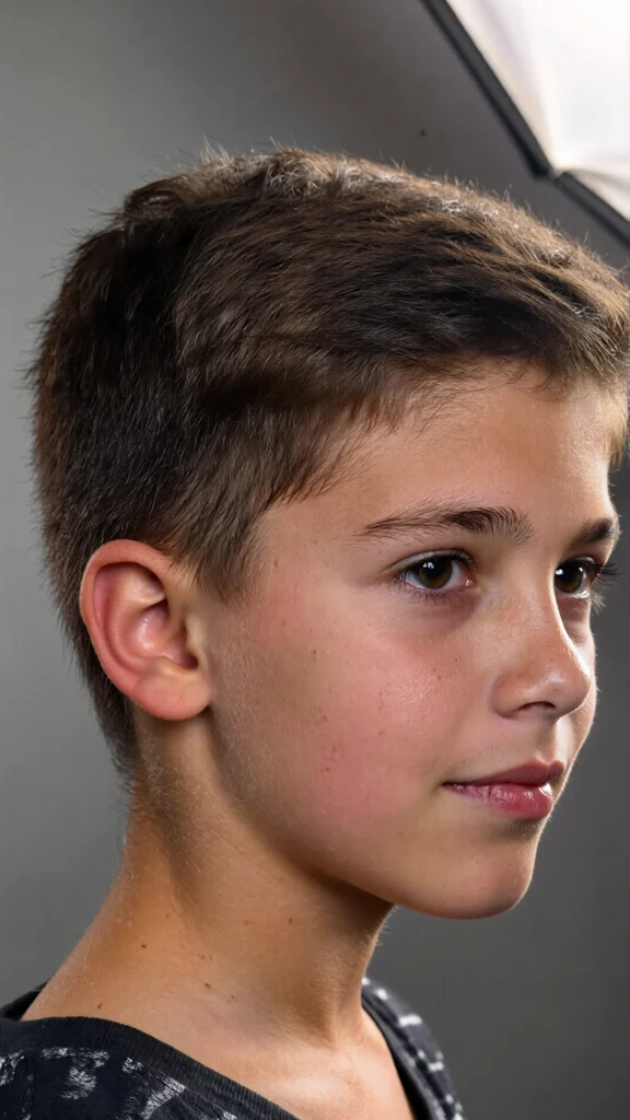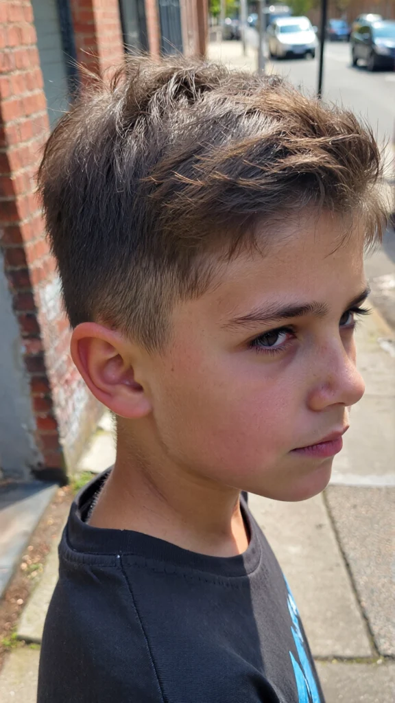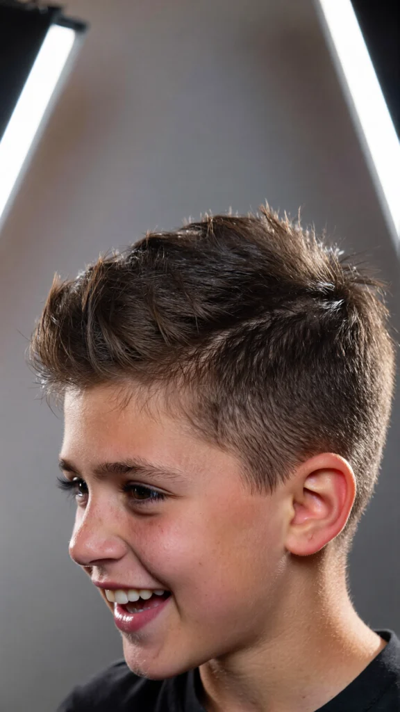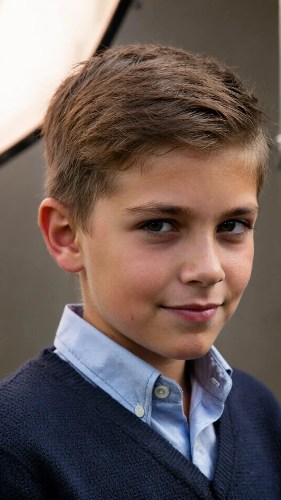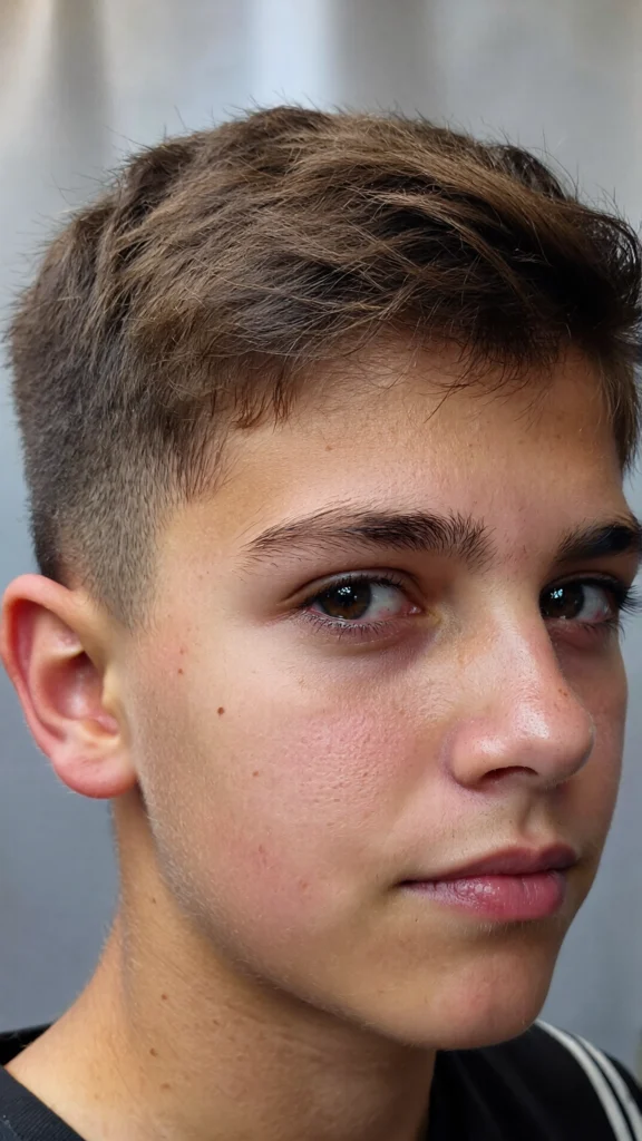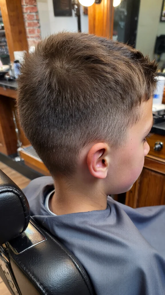 This timeless haircut features a clean side part paired with a low taper fade. It’s ideal for boys who prefer a neat and traditional look that never goes out of style.
