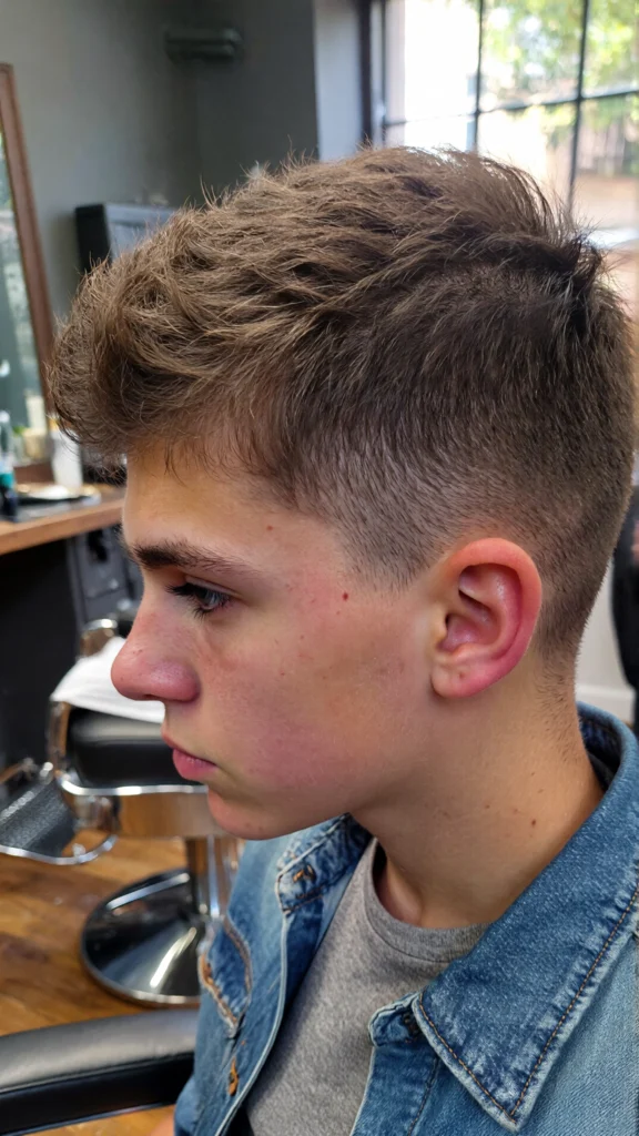 A short quiff adds height without being overpowering. The low taper fade ensures the look stays clean and age-appropriate.