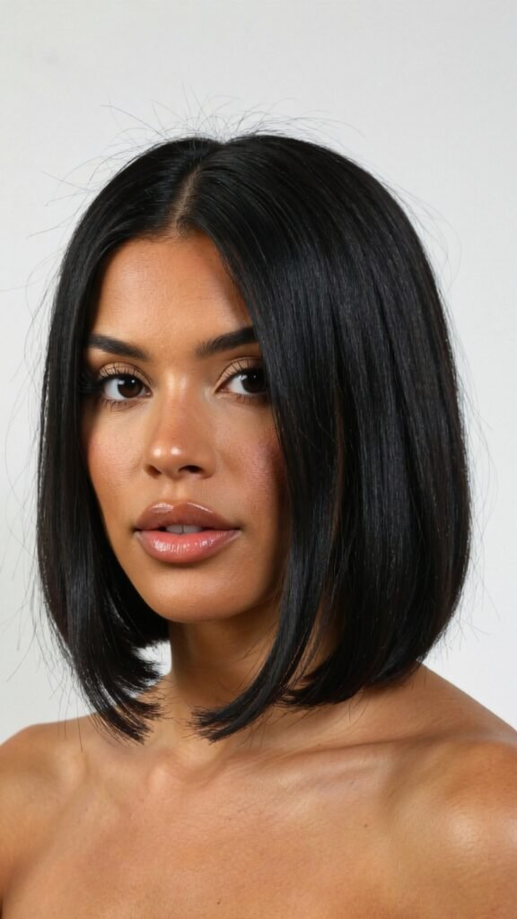 If you love clean lines and modern cuts, the straight lob with a middle part is perfect. It’s low maintenance yet always looks intentional.