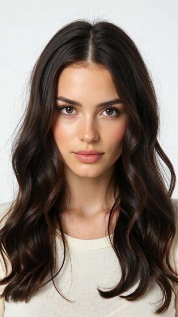 Long, layered hair frames the face beautifully when parted down the center. This style adds bounce, reduces heaviness, and gives long hair a lively, fresh feel.