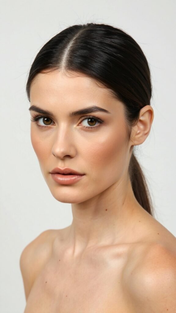 A high ponytail with a sleek middle part creates the perfect contrast of structure and lift. This style is sporty yet chic and works great for both casual and glam looks.