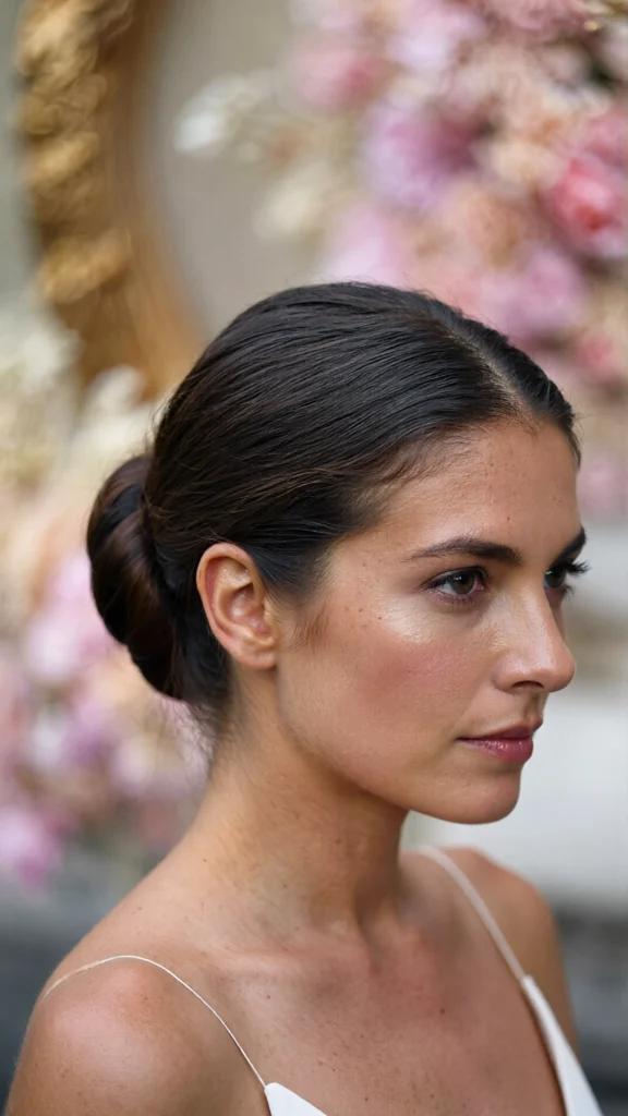 3. Low Bun Slick Back With Middle Part