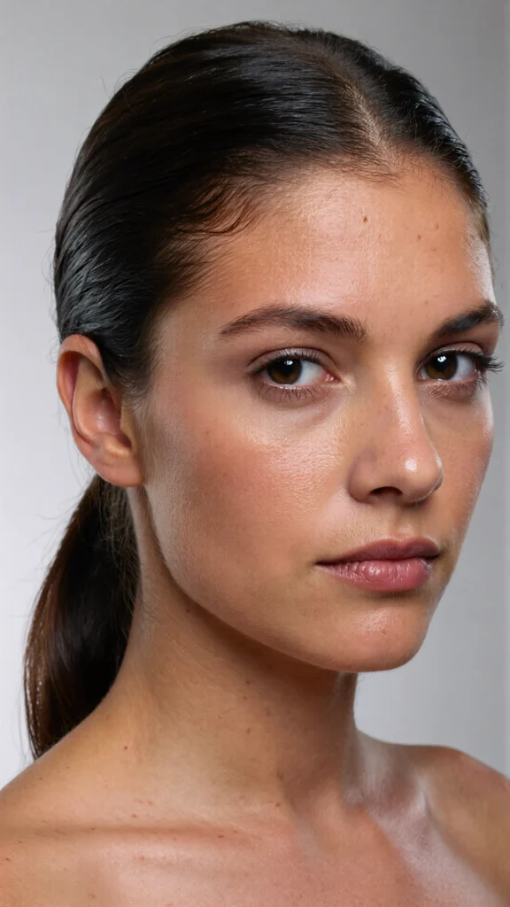 A slicked middle part ponytail elongates your face, sharpens your jawline, and gives a high-fashion effect. It’s clean, modern, and incredibly flattering.
