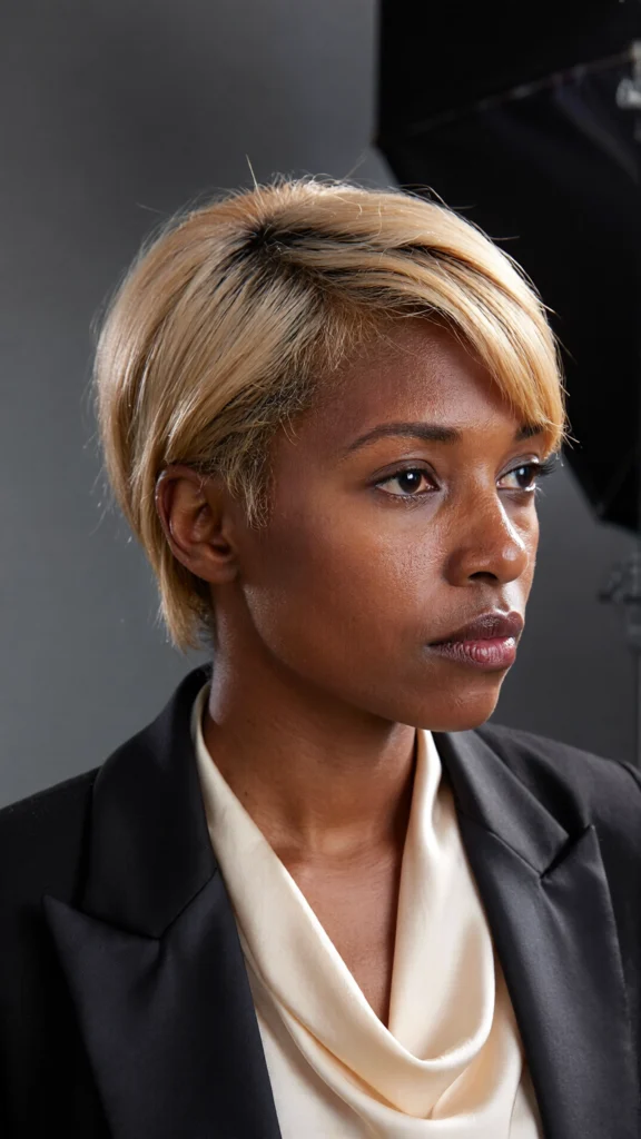 A blonde pixie haircut makes a powerful fashion statement. Whether platinum, honey blonde, or ash blonde, this style highlights skin tone and adds instant glamour.