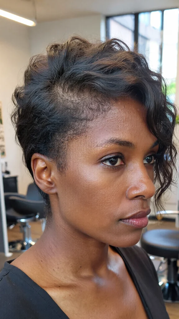 Natural curls shine in a pixie cut. This style keeps curls defined and bouncy while reducing bulk. It’s perfect for women with type 3 or 4 curls who want a playful, youthful look.