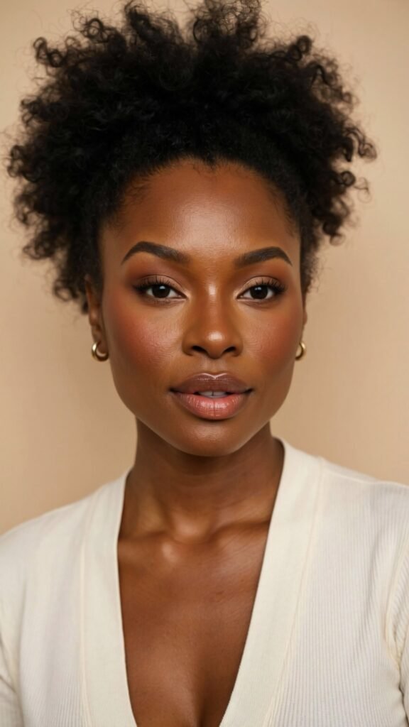 An afro ponytail celebrates natural volume and shape. It resembles a high puff but with a more sculpted, rounded form—rich, full, and beautifully textured.