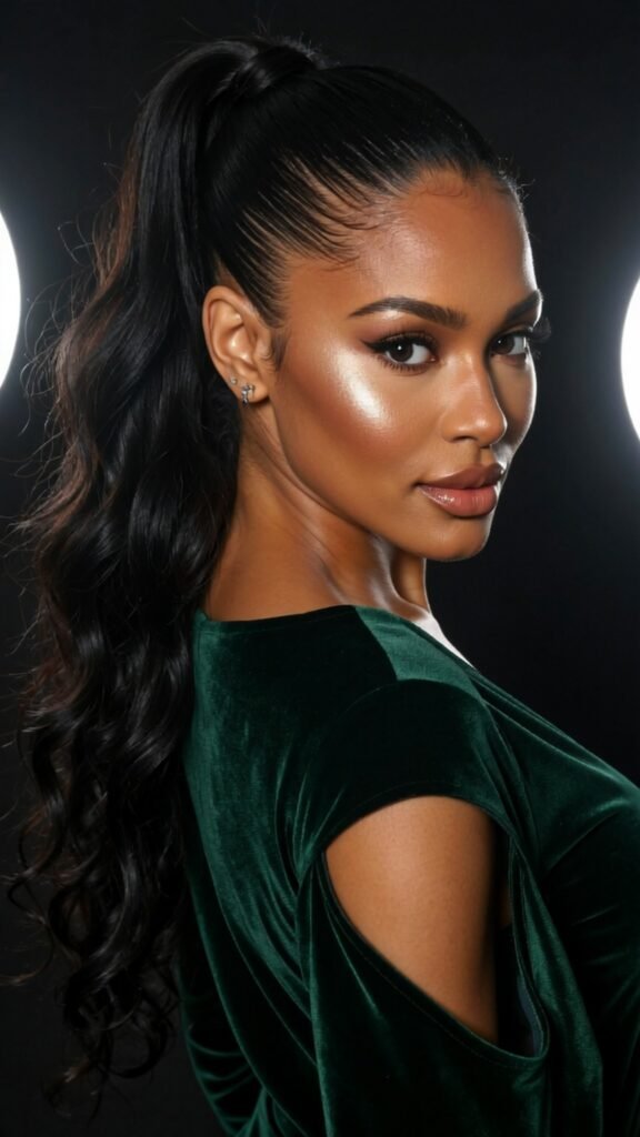 A sleek high ponytail is a timeless favorite for Black women because it’s clean, elegant, and works for both casual and glamorous days. Typically achieved with a silk press or a smoothing gel technique, this ponytail sits at the top of the head and cascades down the back. Add extensions for extra length or volume.