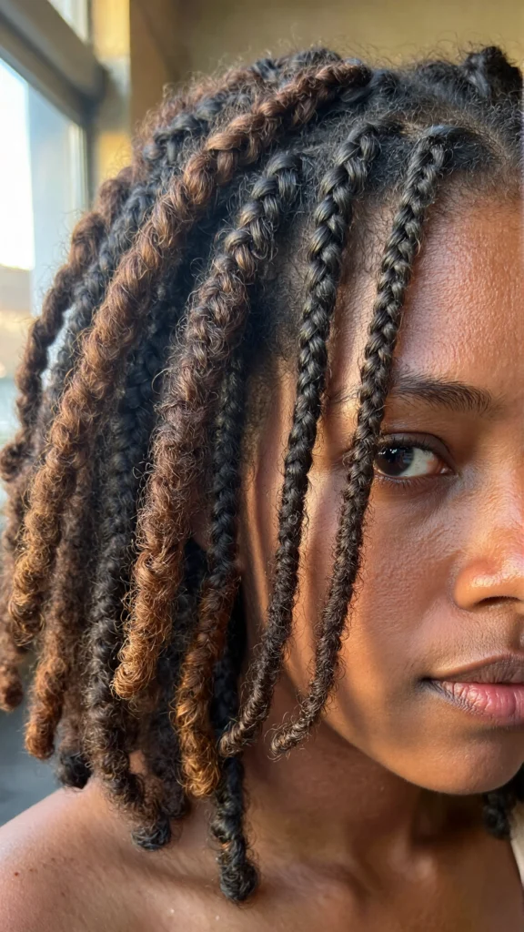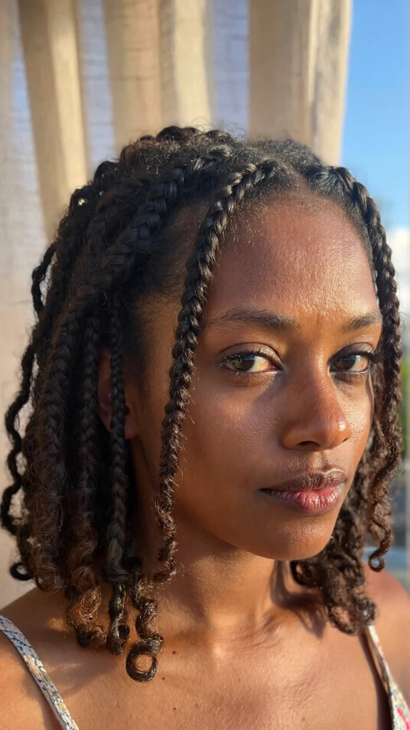 Flat twists are a protective, elegant hairstyle that works beautifully on shorter lengths. You can style them into side parts, zigzags, or twist designs to add personality.