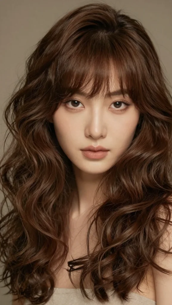 Blend soft bangs into your curls for a trendy and flattering face-framing effect.