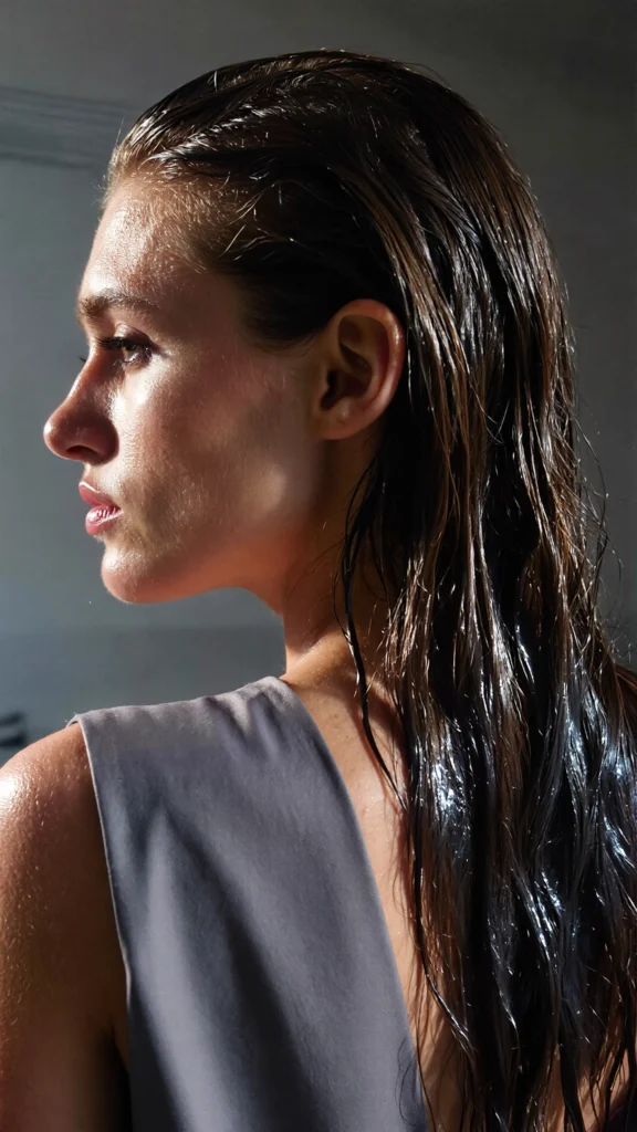For a runway-ready shine, apply high-gloss gel or wet-look mousse from roots to ends. This creates a sleek, dramatic finish.