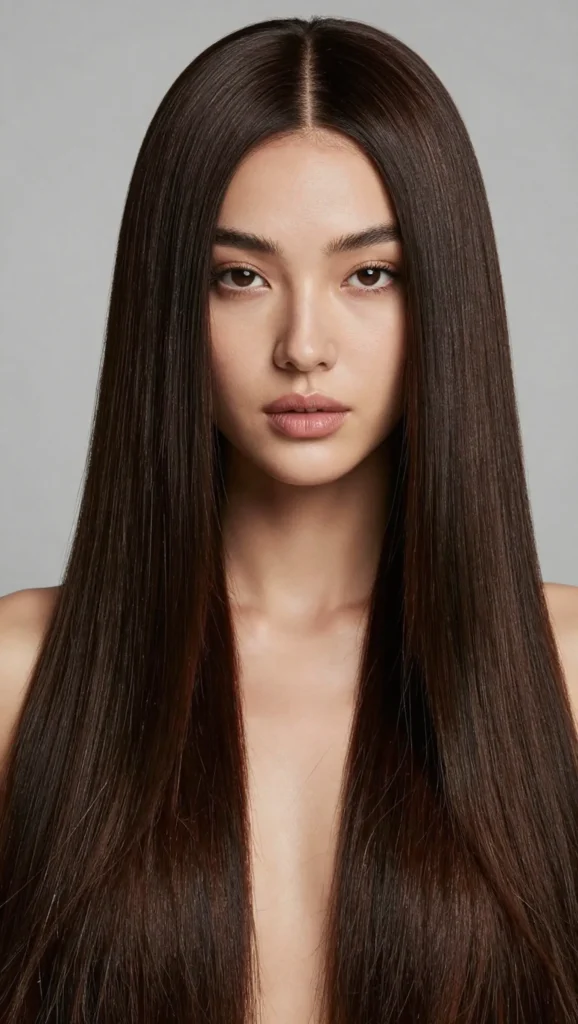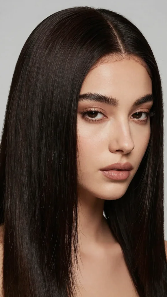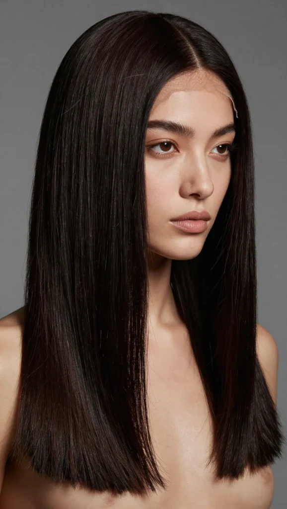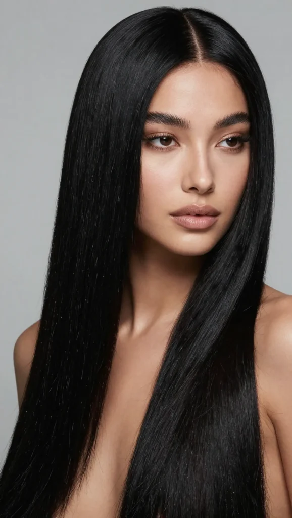 Jet black hair looks bold, shiny, and elegant. It creates a strong contrast against the skin and enhances the sleekness of straight hair.