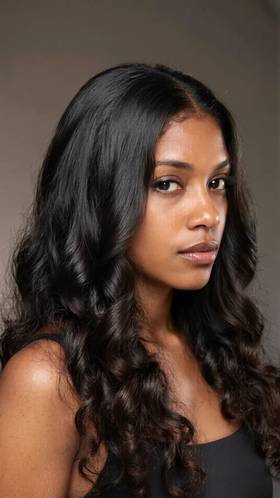 The deep side part gives drama and volume even in a sleek style. Pair it with a bun, ponytail, or leave-out curls at the end.