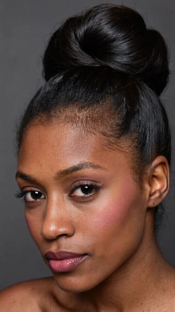 A clean front paired with a fluffy natural afro bun. This style celebrates texture while keeping things neat, elegant, and natural.